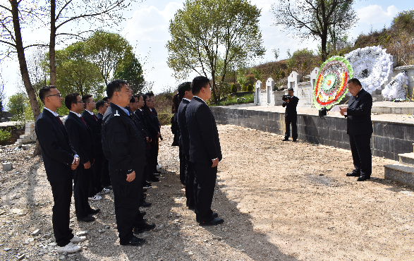 肃立在烈士墓前,党组副书记、副检察长徐恺东要求该院全体检察干警要从增进爱国情感做起,坚持以习近平新时代中国特色社会主义思想为统领,弘扬“自力更生、艰苦奋斗”的延安精神和“埋头苦干”的优良传统,立足岗位,做好本职工作;党员干警更要以身作则,率先垂范,发挥模范带头作用,充分体现党的先进性,不断提高政治素质、专业水准和业务技能,走在时代前列,迎接时代挑战。