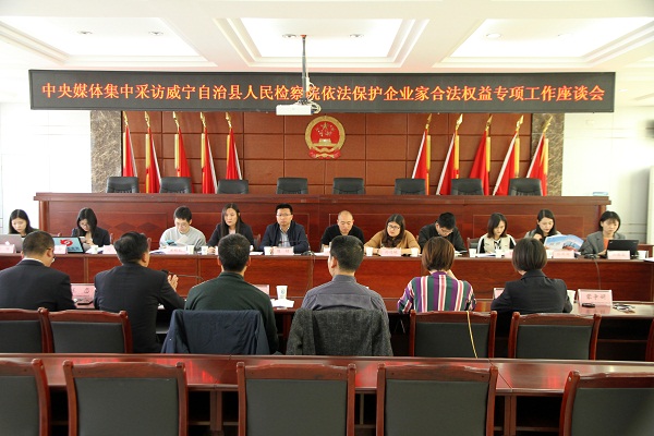 4月17日,中央媒体采访团一行到sportcar365_365bet官网开户网址_365体育官网入口自治县检察院采访保护企业家合法权益专项工作,并召开座谈会。