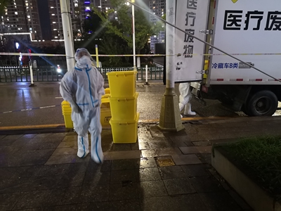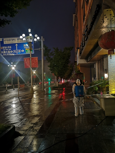 小尹和小臧,两个女孩子,她们是县卫健局派驻酒店内部的医疗工作人员,日常消杀是她们的工作内容之一,是在询问才得知,她们一个22岁、一个23岁,花样年华,弱小的身躯却拥有大大的力量!50斤重的消毒喷雾器,看她俩背起来的时候身躯有些许摇晃,但仍一丝不苟的每天两遍消杀。每天晚上的医疗垃圾搬运,差不多三十箱,从酒店内部到门口上专门的运输车辆,夜晚瑟瑟的寒风中来回搬运,因疫情防守要求,只能目睹小尹吃力的将箱子托到车上,那一刻我差点破防。完成以后我看见她们的防护面罩上布满雾水,那是汗水,她们真的累了。我想,肯定有一股神秘的力量在支撑着她们,或是信仰,又或是发自内心的爱!