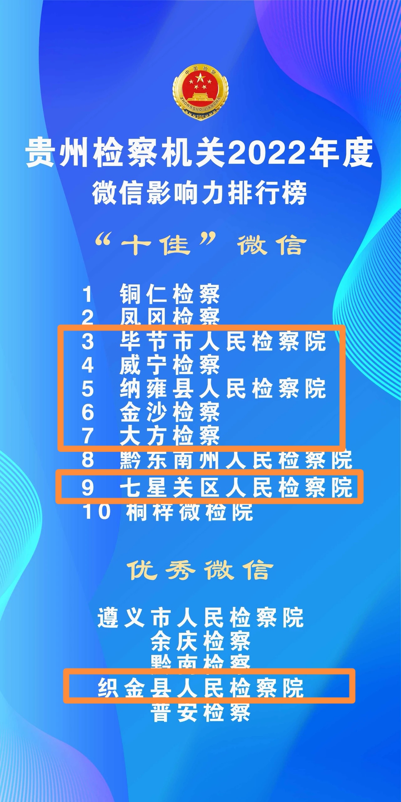 喜报| 毕节市检察机关2个基层检察院、10...