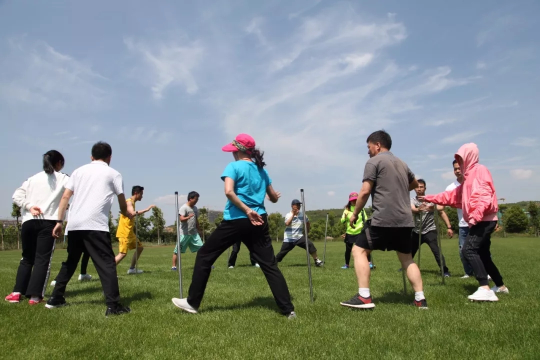 炎炎烈日下,各小组队员密切协作,相互鼓励,顽强拼搏,高标准高质量地完成了鼓动人心、不倒森林、珠行万里、挑战NO.1等各项训练科目。