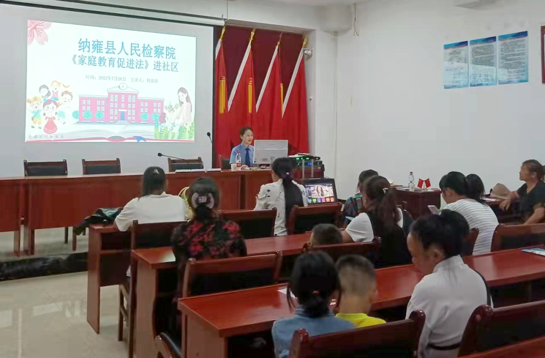 7月27日下午,纳雍县检察院“守未联盟”工作室的检察官走进纳雍县利园街道办事处蟠龙社区,为社区的中小学生家长们送上一场“检爱同行·依法带娃”干货满满的法治专题讲座。