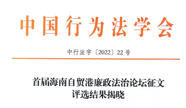 论坛期间揭晓了“首届海南自贸港廉政法治论坛征文”评选结果。张宇、林江、刘员撰写的《公益诉讼视野下非涉案企业环境保护合规建设路径思考》获三等奖。另有5篇论文被论坛收录。