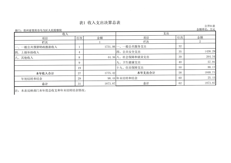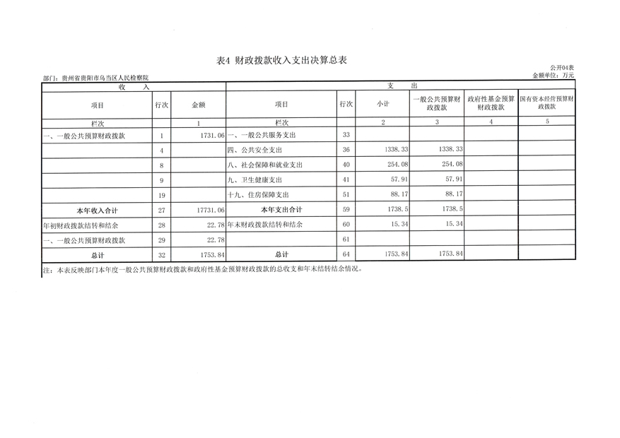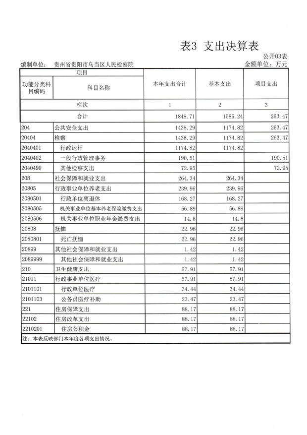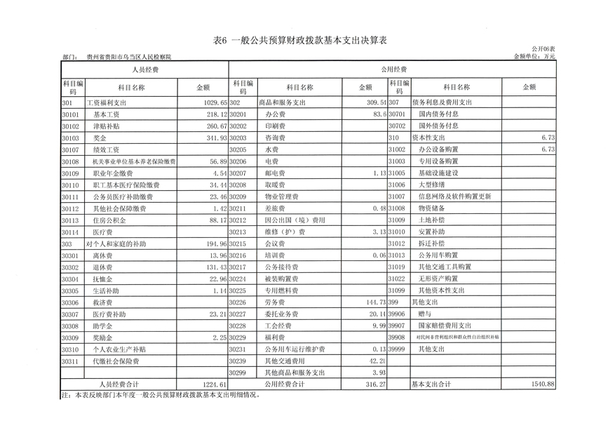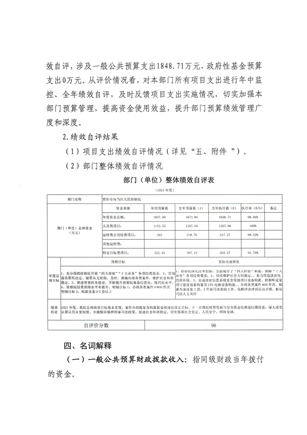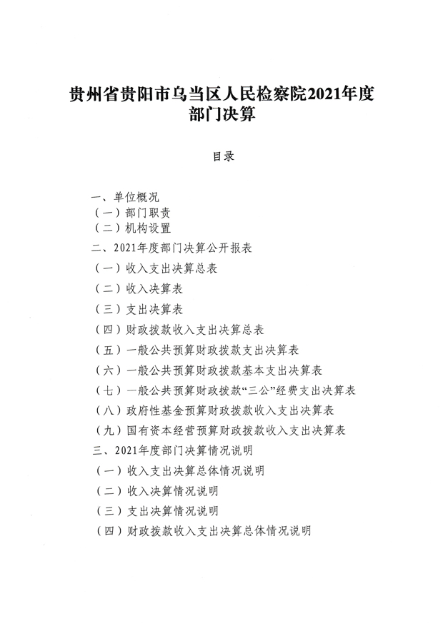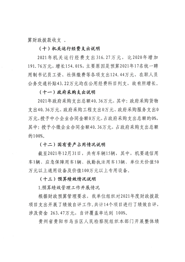贵州省贵阳市乌当区人民检察院2021年度部门决算