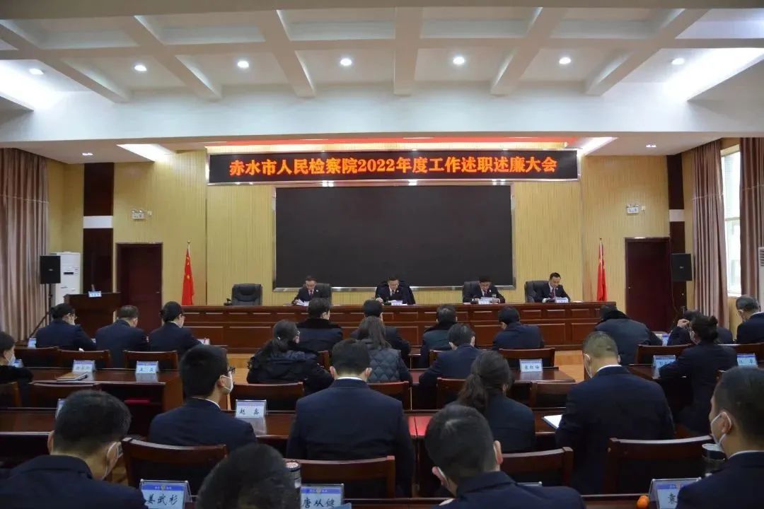 1月17日,赤水市人民检察院召开2022年度工作述职述廉大会,各部门负责人、驻村第一书记逐一上台,向院党组和全院干警汇报2022年度工作情况,主动接受监督。