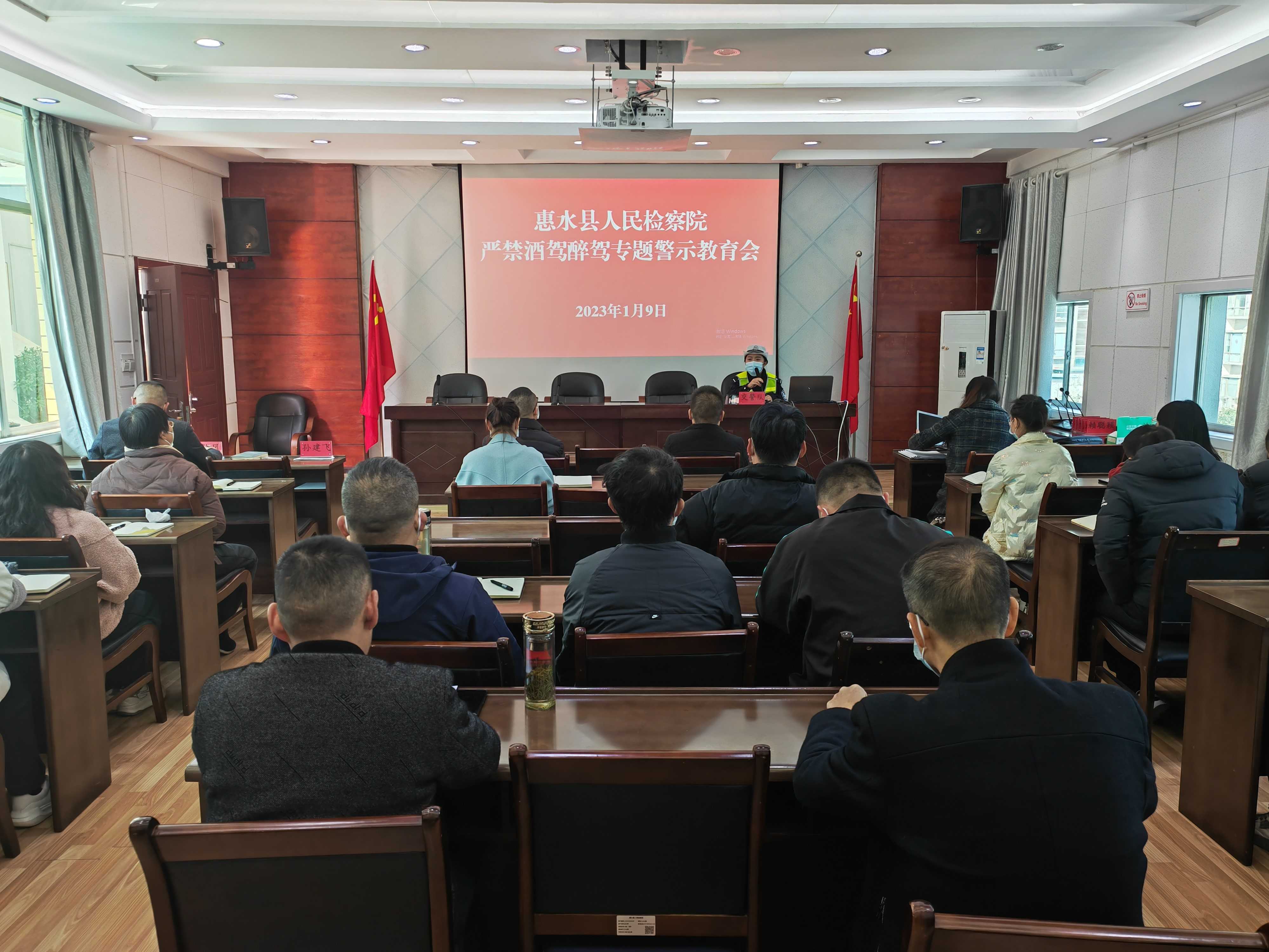 为进一步增强检察干警交通安全意识,加强纪律作风建设,有效杜绝检察人员酒驾醉驾违法犯罪行为发生,1月9日,惠水县人民检察院召开严禁酒驾醉驾专题警示教育会。会议由该院党组书记、检察长赵青松主持,全体干警参加会议。