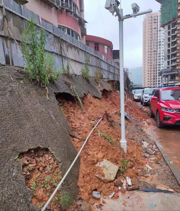 据悉,今年5月,龙里县检察院在履职中发现一小区停车场出入口对面的挡土墙因持续降雨发生垮塌,垮塌长20余米,高3余米,挡土墙上方是一栋六层楼的自建居民楼,泥沙、石块滑落至道路上,导致道路交通阻塞。由于降雨量持续增加,该处有继续垮塌的风险,危及附近建筑物和来往行人的安全,影响小区业主出行。