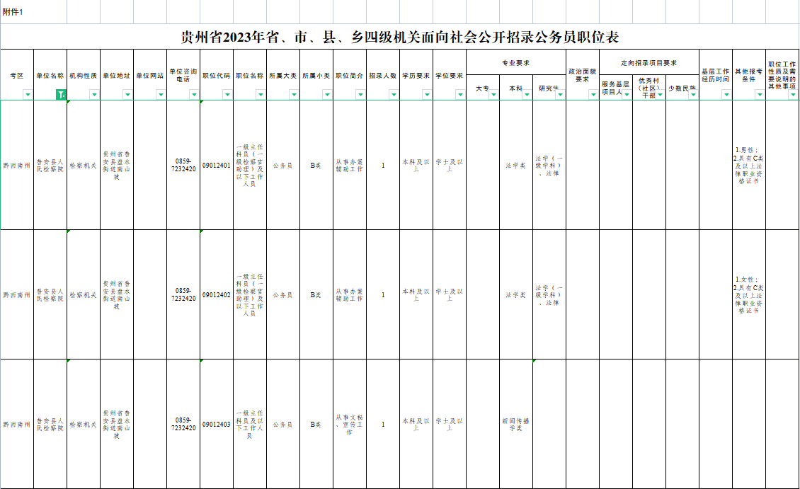 贵州省2023年省、市、县、乡四级机关统一面向社会公开招录公务员(人民警察)公告