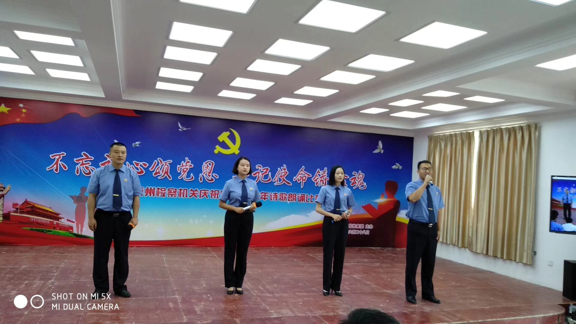 为庆祝七一建党节,黔西南州人民检察院举办了书画摄影作品展,“不忘初心颂党恩 牢记使命铸检魂”主题诗歌朗诵等活动,晴隆县院参赛代表队在参赛的项目中均取得了好成绩。