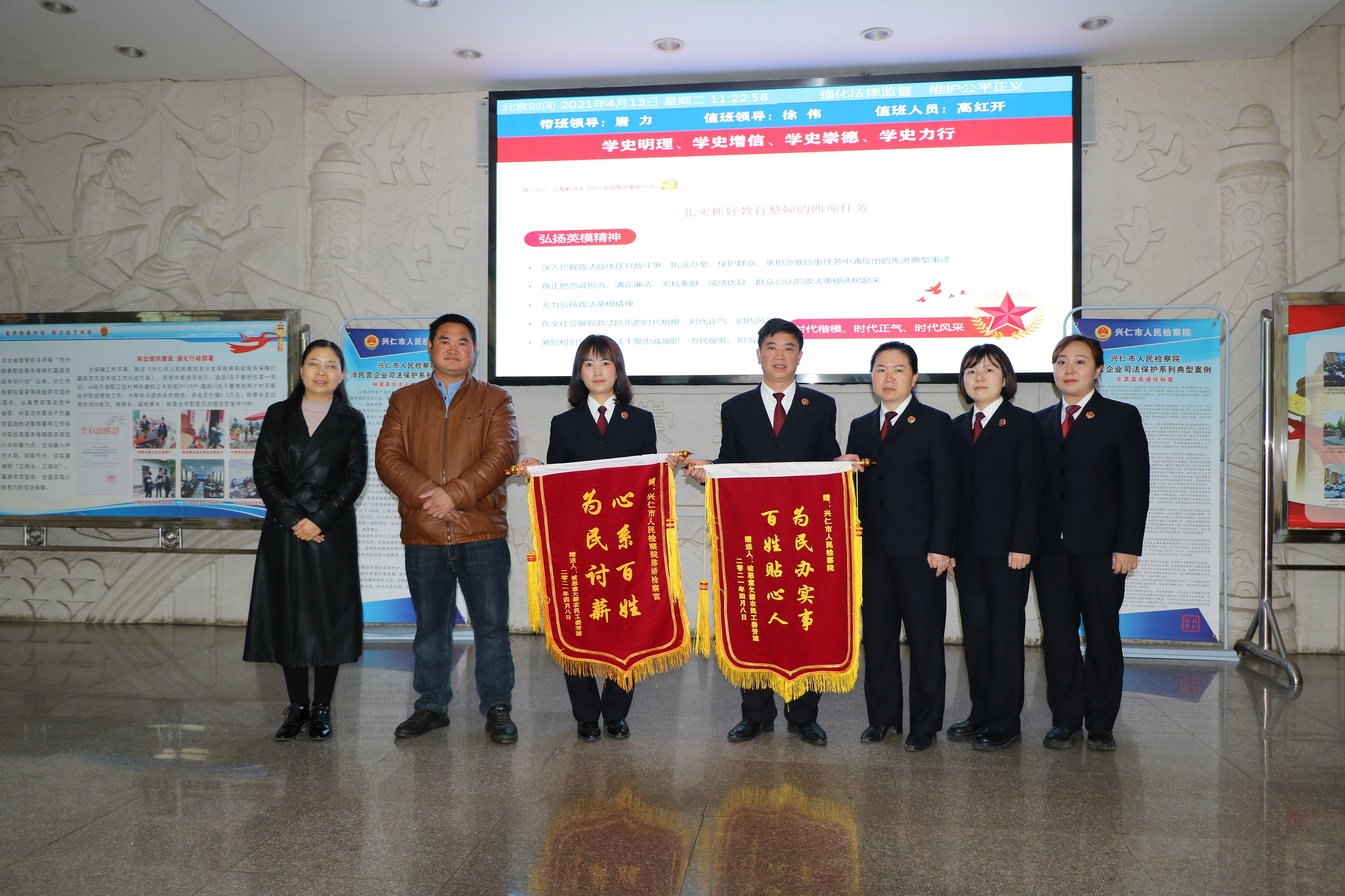 4月13日,兴仁市人民检察院收到了“为民办实事,百姓贴心人”“为民讨薪,心系百姓”的致谢锦旗。