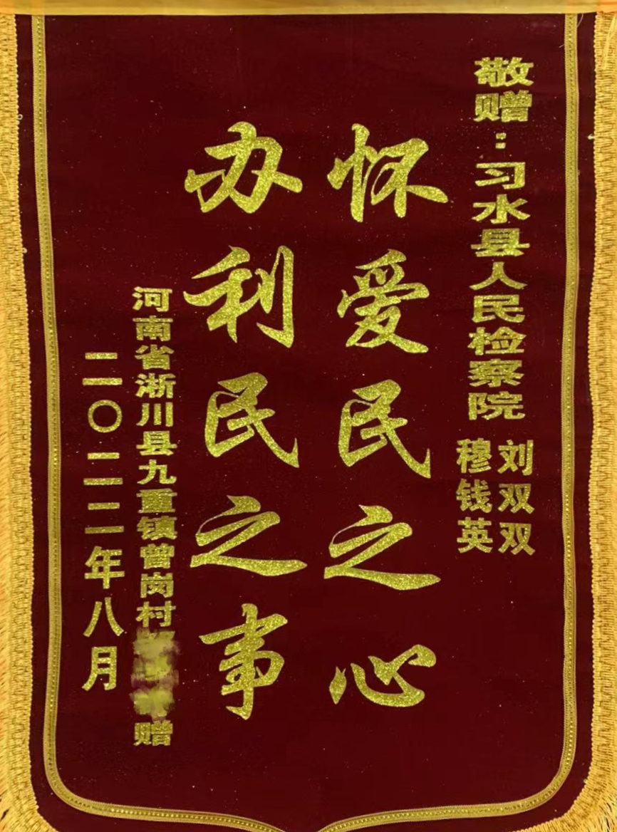 “感谢您的公正司法,让我的损失得到了赔偿。”近日,习水县人民检察院第二检察部办案检察官收到案件当事人邹某某发来的信息,同时收到了一份特别的快递,是一面写有“怀爱民之心 办利民之事”的锦旗。这面锦旗的背后是案件当事人邹某某对检察机关坚守司法为民初心、维护当事人合法权益的肯定。