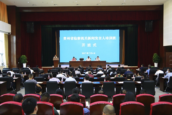 本网讯 7月4日,贵州省检察机关新闻发言人培训班在国家检察官学院贵州分院开班,来自全省三级院100名新闻发言人参加了培训。省检察院党组副书记、常务副检察长何冀作动员讲话,最高检新闻办专职副主任肖玮出席并讲话,省检察院党组成员、政治部主任渠新建主持开班仪式。