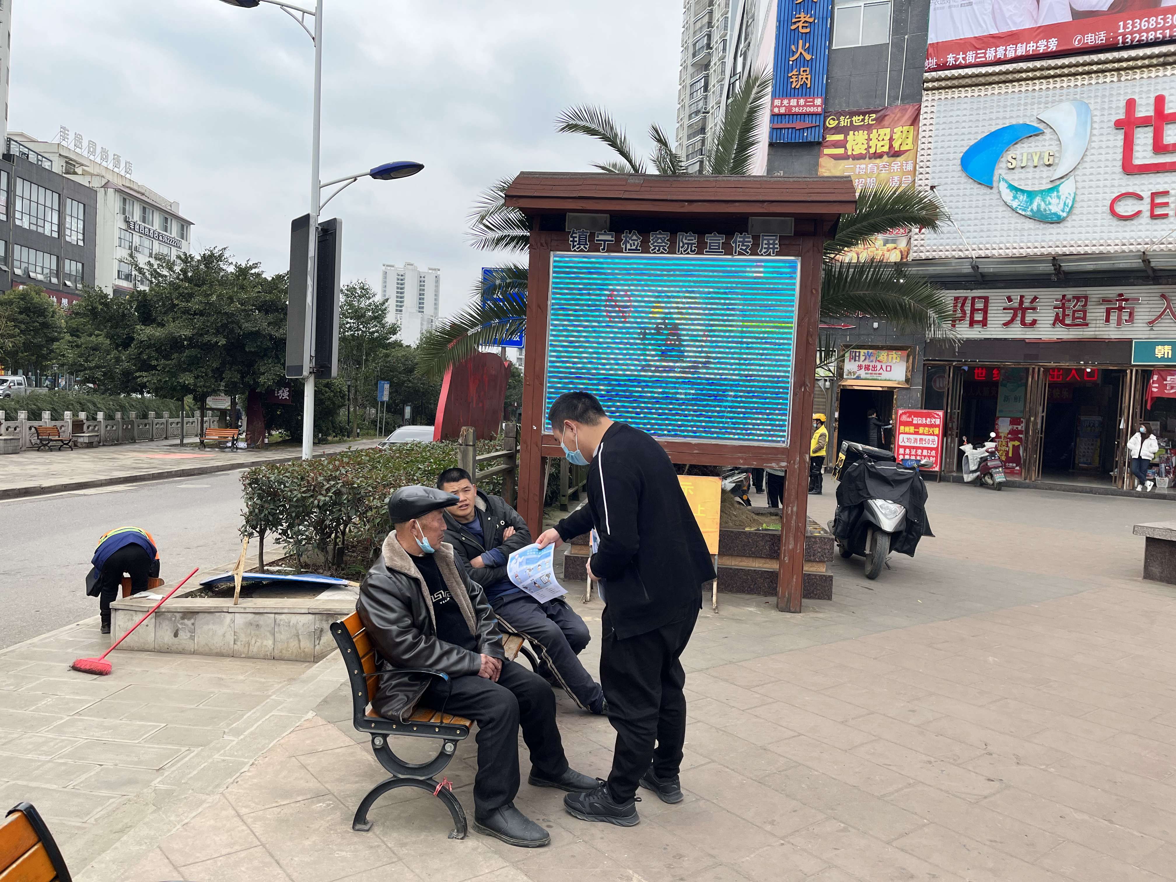 一是播放防疫宣传视频。本院按照中共镇宁自治县委宣传部《关于近期疫情防控重点宣传工作提示》要求,通过本单位LED屏播放最新防疫视频,宣传普及最新疫情防护知识,引导群众强化自身防护意识。
