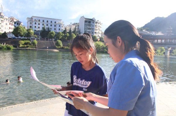 暑假期间,未成年人自由活动时间增多,持续的高温天气,让游泳成为未成年人喜爱的活动,溺水事故的风险也随之加大。为加强对未成年人防溺水安全教育工作,提高未成年人自我保护意识和安全防护能力,预防未成年人溺水事故的发生,8月11日,镇远县人民检察院“蔚蓝”未检工作室干警走进舞阳河畔开展法治宣传教育。
