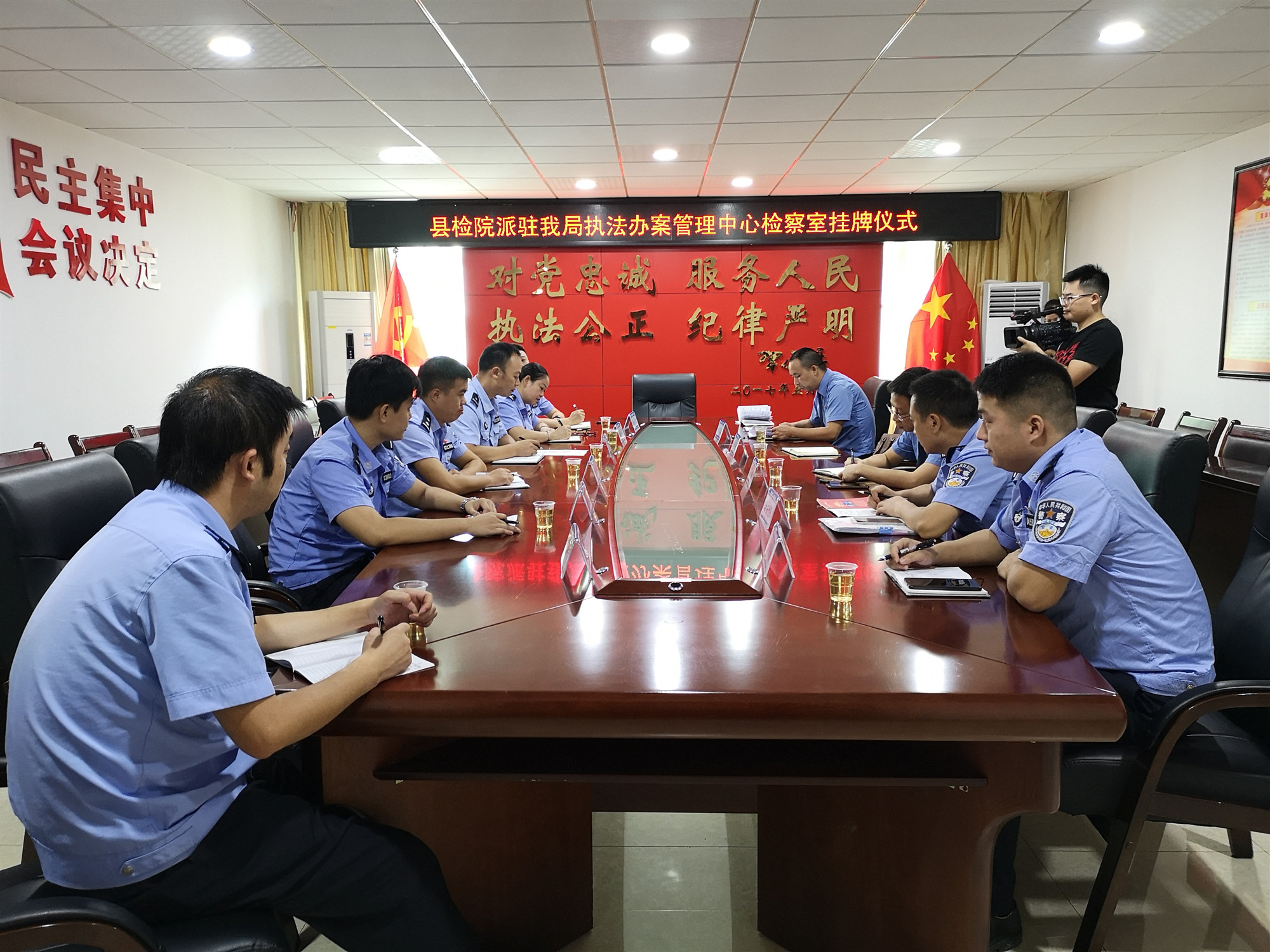 为进一步优化检察职能,强化执法办案规范化建设,9月5日上午,镇远县检察院派驻县公安局执法办案管理中心检察官办公室正式挂牌成立,县检察院党组、县公安局相关领导出席挂牌仪式,并开展了座谈会,会上宣读了《黔东南州检察机关派驻检察官制度》,该制度就派驻工作内容,工作方式,派驻检察官工作职责等内容进行了详细规定,与会人员并就今后如何更好的规范执法办案、提升案件质量进行讨论发言。