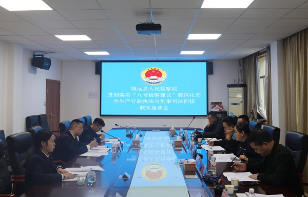 为进一步贯彻落实最高检“八号检察建议”,依法严惩打击安全生产领域涉嫌违法犯罪行为,保障人民群众生产财产安全和社会稳定。4月15日,镇远县人民检察院主动牵头县应急管理局、公安局、市场监督管理局、综合行政执法局等6部门召开贯彻落实“八号检察建议”工作座谈会。