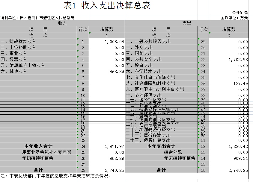 附件:贵州省铜仁市碧江区人民检察院2017年决算表