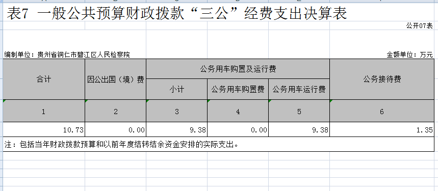 (七)、一般公共预算财政拨款“三公”经费支出决算表