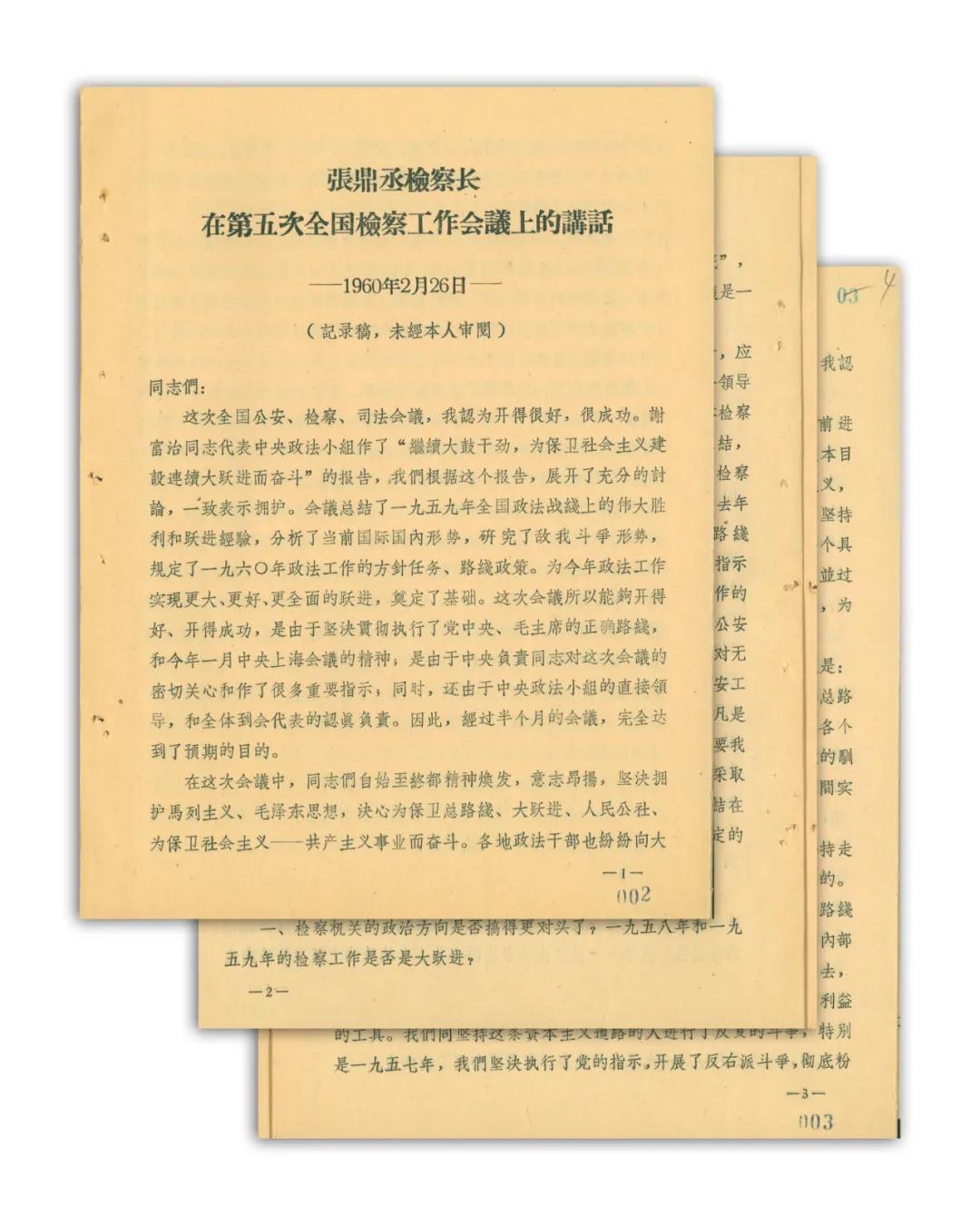 张鼎丞检察长在第五次全国检察工作会议上的讲话(档案类型:文书档案;保存地:最高检档案馆)