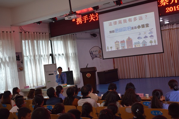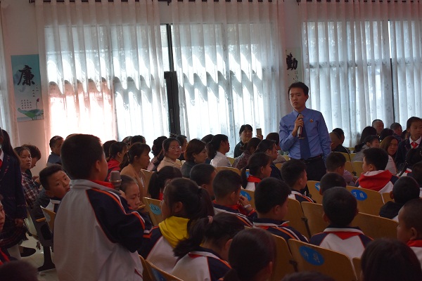 上课铃响了,sportcar365_365bet官网开户网址_365体育官网入口自治县第一小学的阶梯教室内,一场别开生面的法治小课堂正在进行。100名学生在家长的陪伴下,一起聆听sportcar365_365bet官网开户网址_365体育官网入口草海未检的检察官以“预防校园欺凌”为主题的法治课。